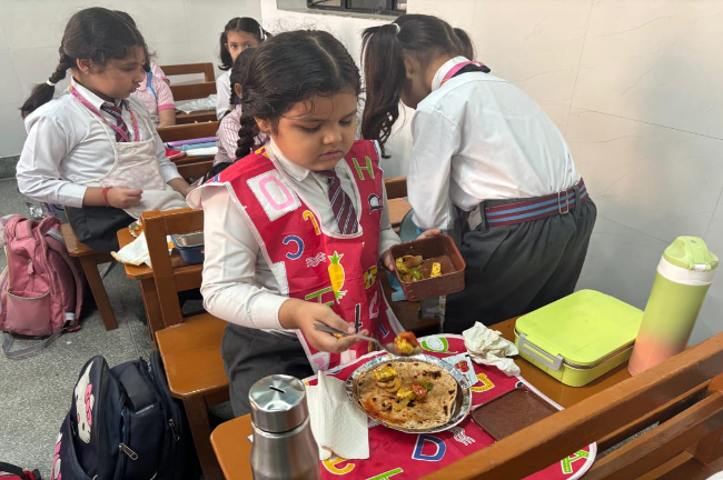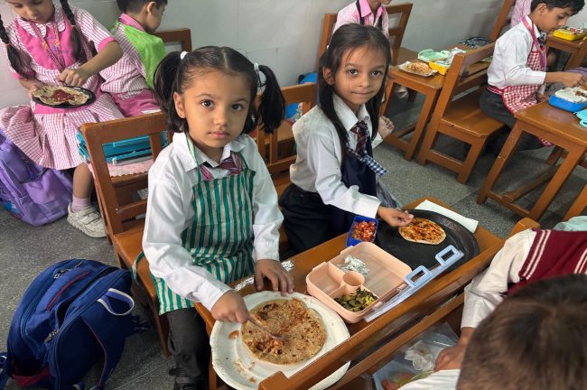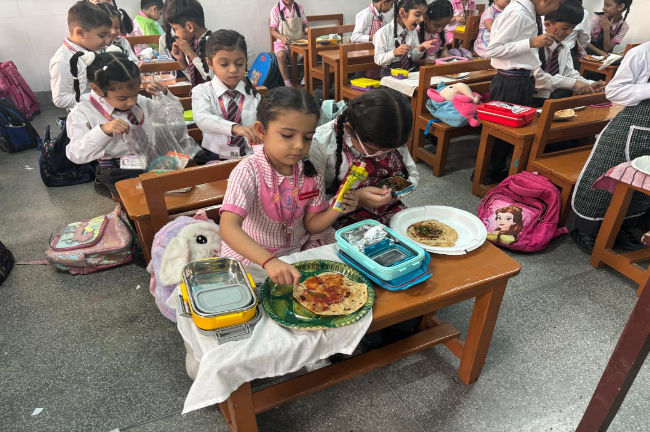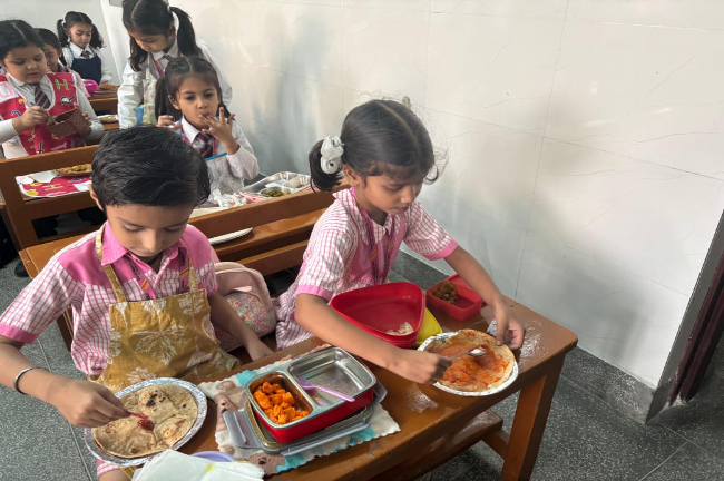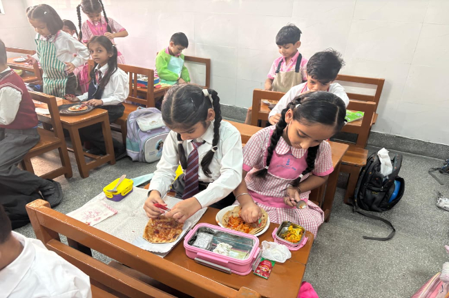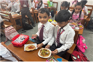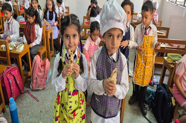 UKG: The UKG students enthusiastically made Chapati Rolls. They spread fillings, rolled the chapatis, and added colorful veggies to create wholesome, delicious rolls. The children were proud of their handiwork and excited to taste what they had made.